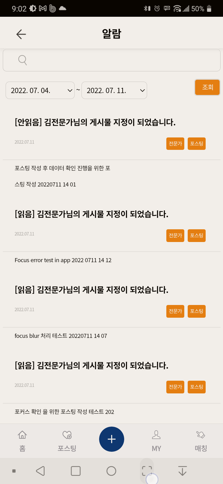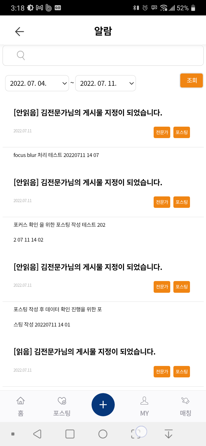 "김전문가 님의 게시물 지정이 되었습니다" 라는 푸시알람이 와서 터치했는데 메인으로 랜딩되고 알림목록에도 없어서 어떤 게시물인지 알 수 없음