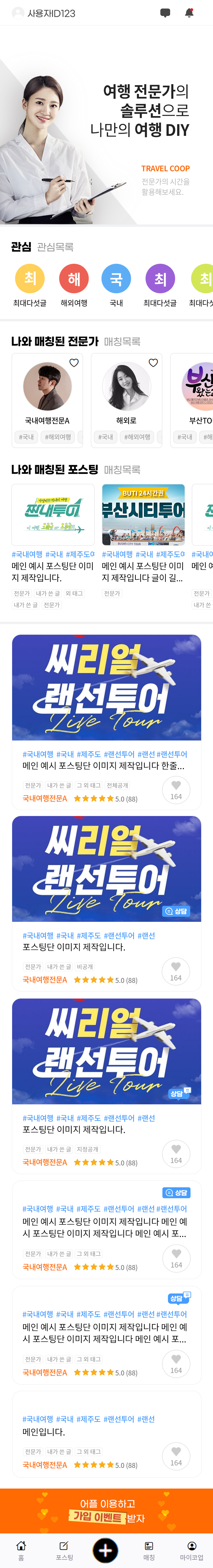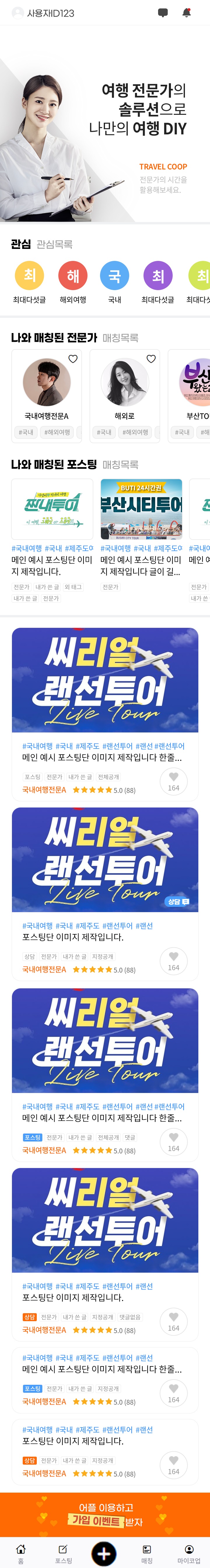 속성 [내가 쓴 글]의 경우 [전문가] 표시가 필요 없습니다. 상담/제안 및 다른 속성을 몇 개 더 추가해서 속성이 최대 표시되는 경우도 시안 필요합니다