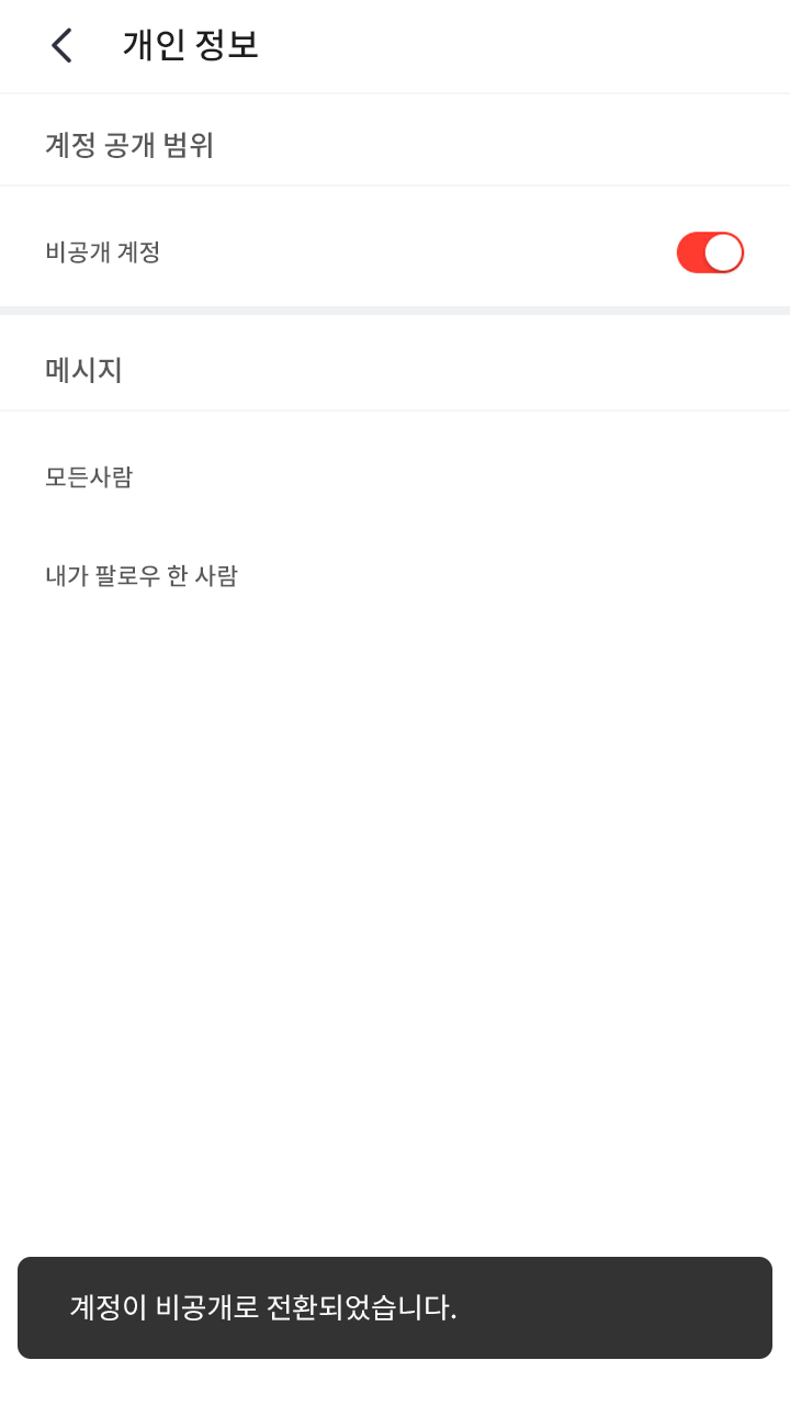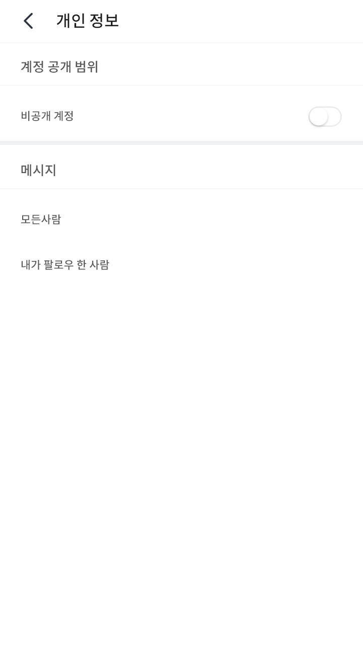 완료됨[디자인] 마이 - 설정 - 개인 정보 (화면 통합으로 제거)