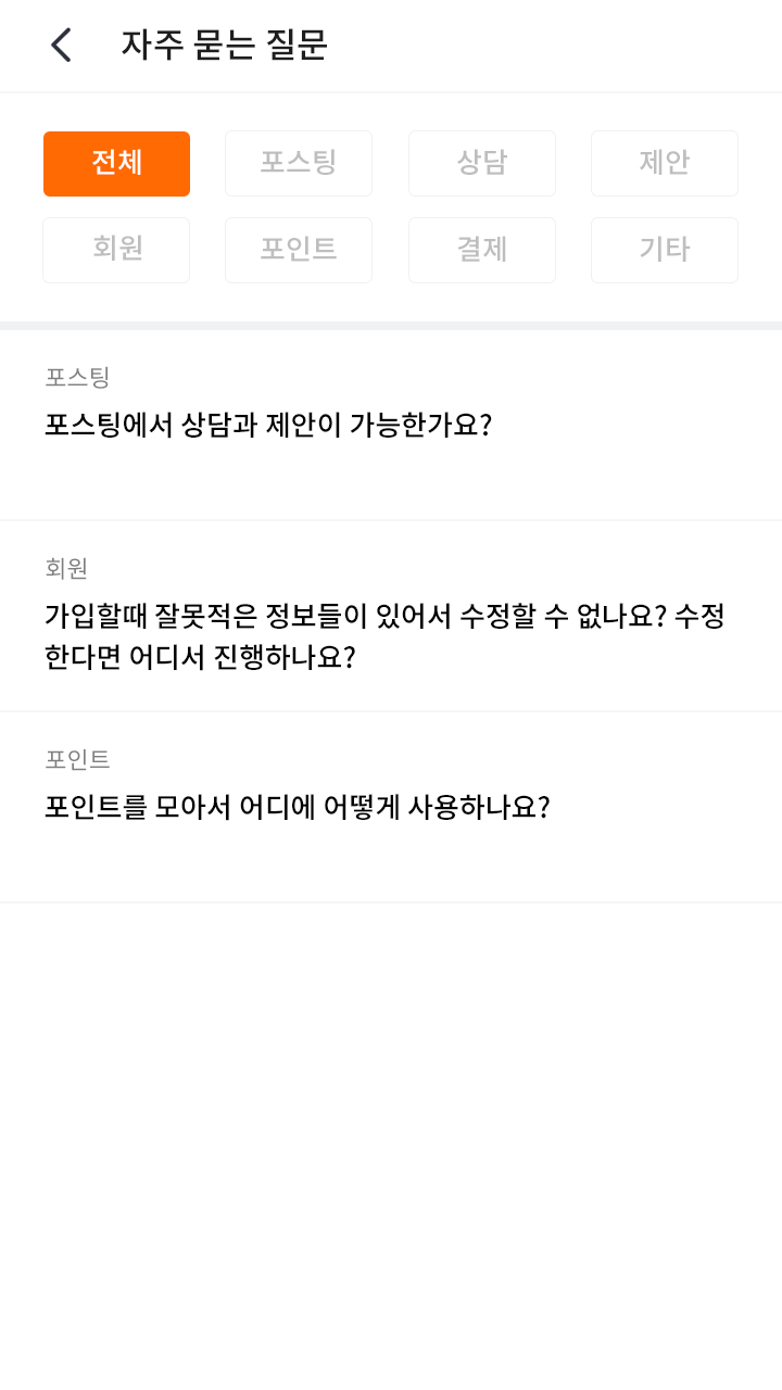 [디자인] 마이 - 설정 - 자주 묻는 질문
