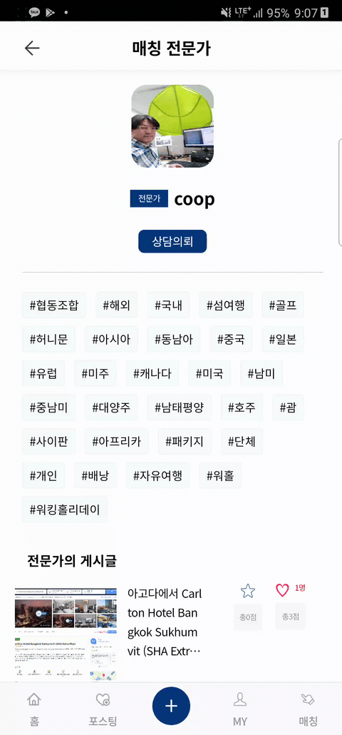 매칭 > 전문가 선택 > 매칭 전문가 화면 > 상담의뢰 버튼 클릭 시 화면 이동하면서 하단에 링크 URL이 확대되어 표시